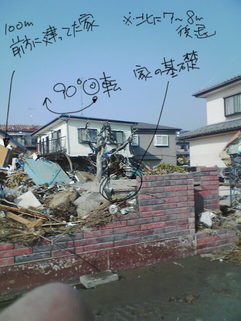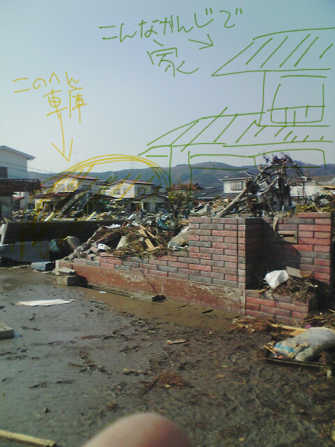足場からかたづけを・・・と思ったら父が帰宅。「逃げるぞ。貴重品バッグに詰めろ」の一言で津波を思い出した母。二階に上がり大きめのリュックをもって一階に戻りあれやこれや詰めていると「波が来たっ!!二階さ上がれ!!」と二階にいた父が叫んで母を呼んだそうです。父は玄関の吹き抜け上部のガラス窓から黒い波が押し寄せるのを見たそうです。