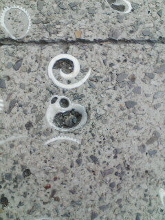 先日のお祭りで小休止した歩道のタイル(?)を見て1号が、